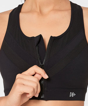 Power Zip Front Mesh Padded Running Bra