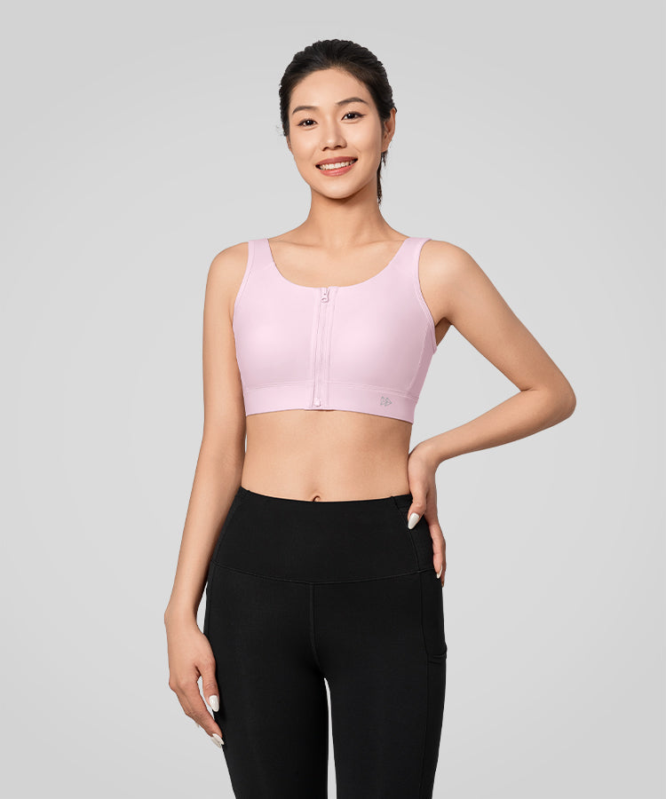 Enfold Zip Front Mesh Racerback Padded Running Bra