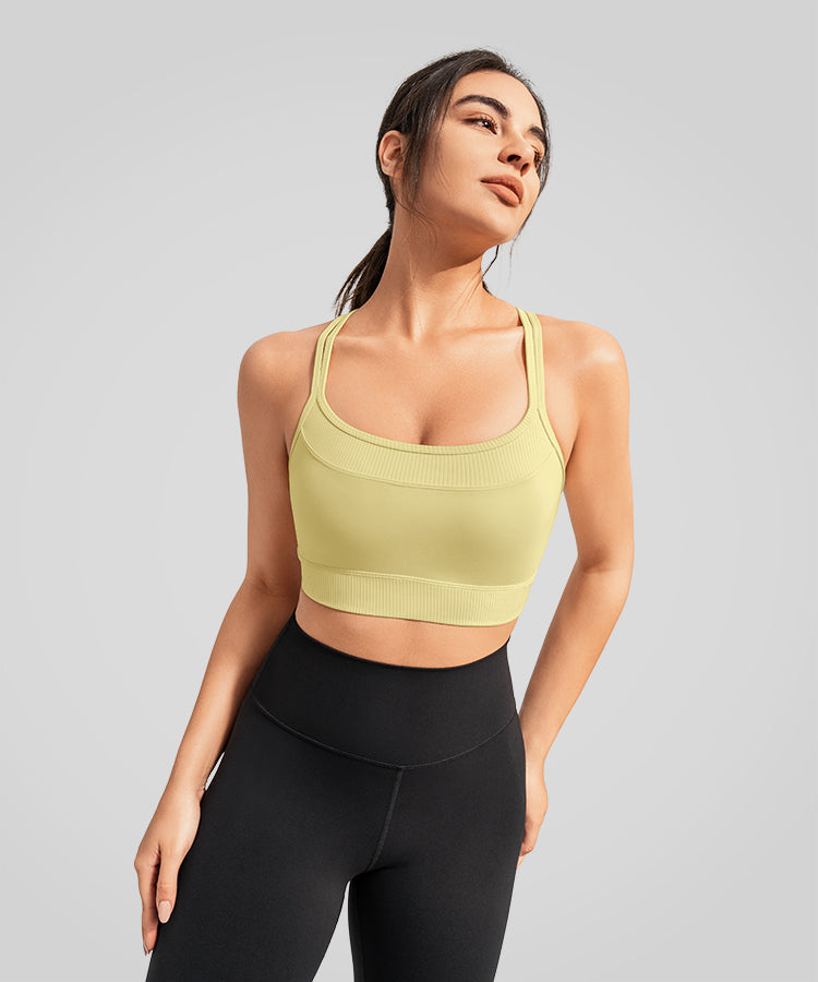 Anywhere Double Strap Ribbed Splicing Yoga Bra