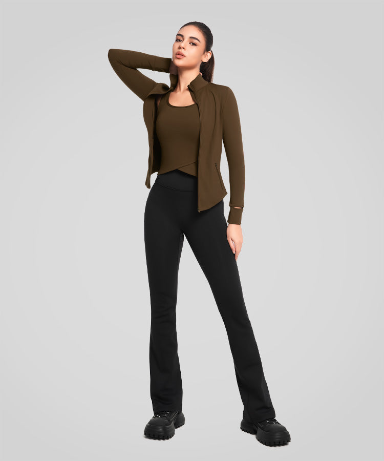 • Waist length for a flattering silhouette