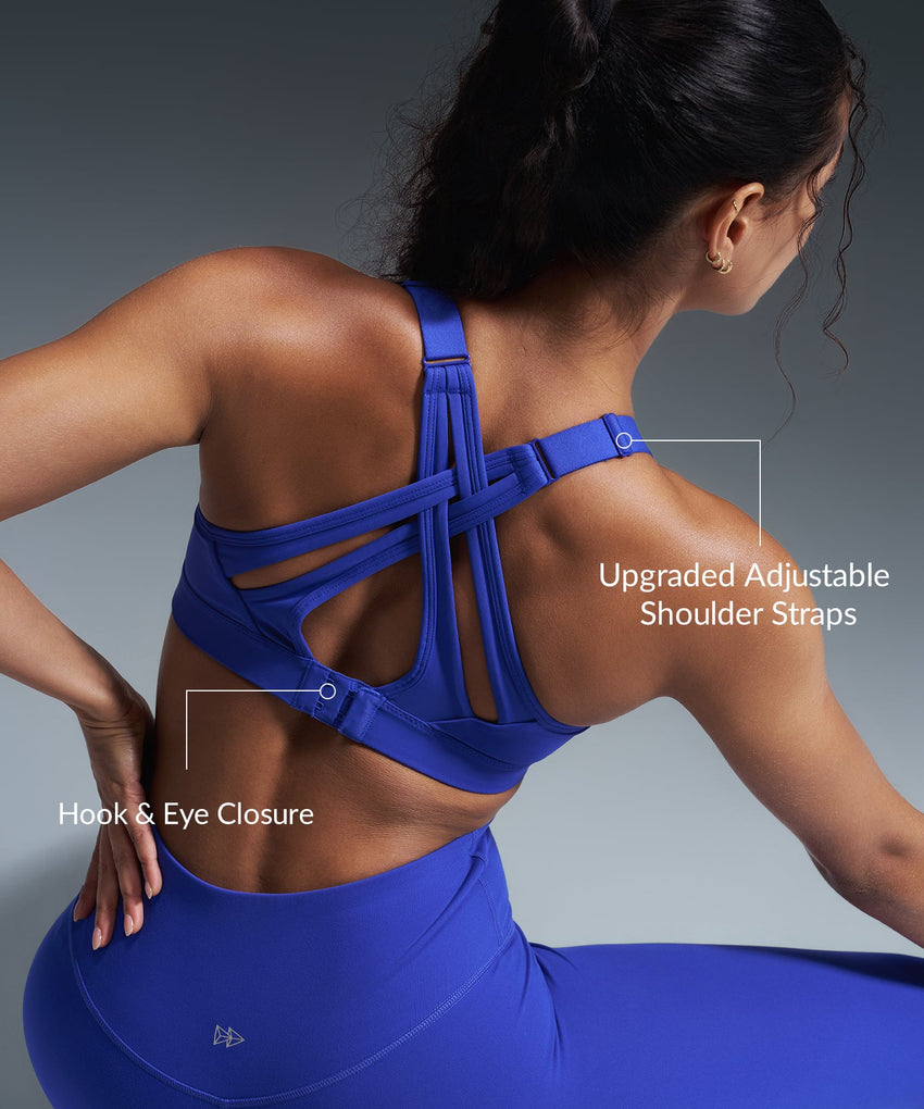 • High-impact sports bra with adjustable crisscross straps