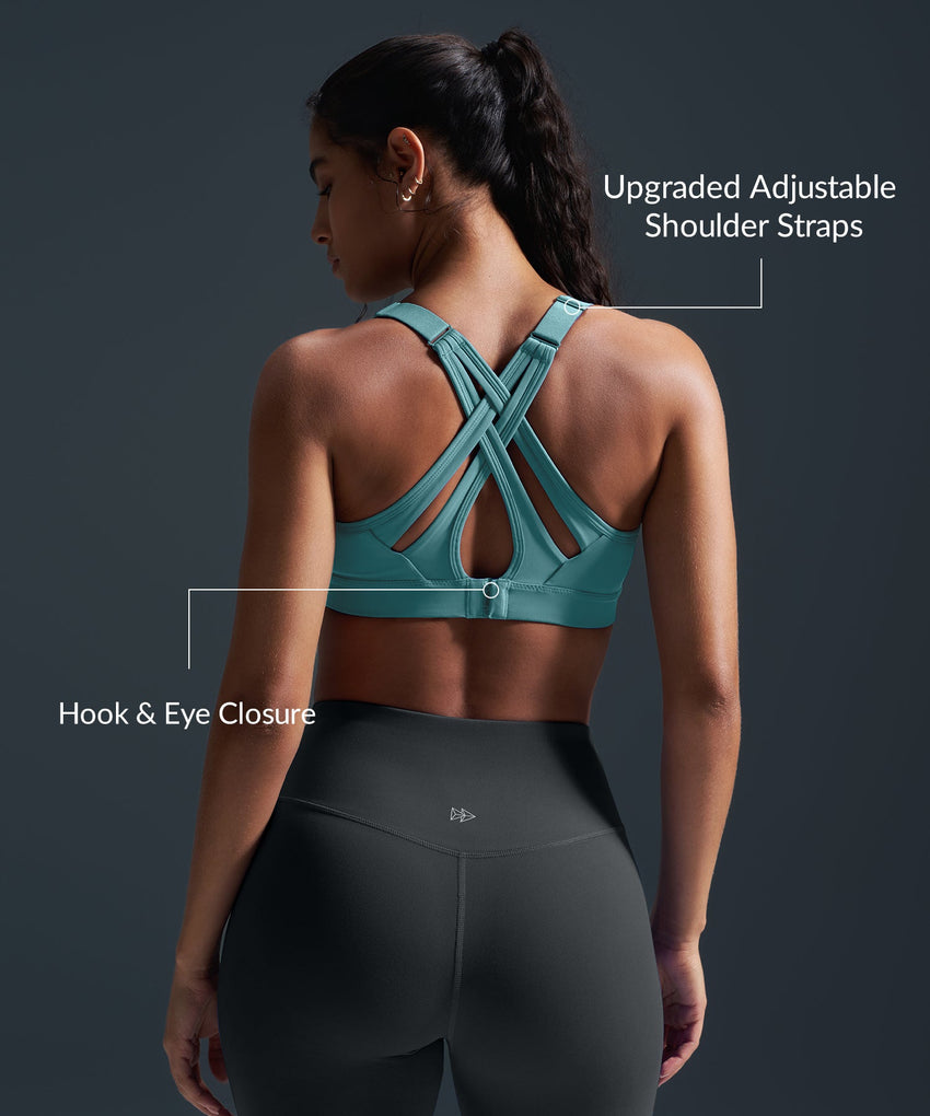 • High-impact sports bra with adjustable crisscross straps