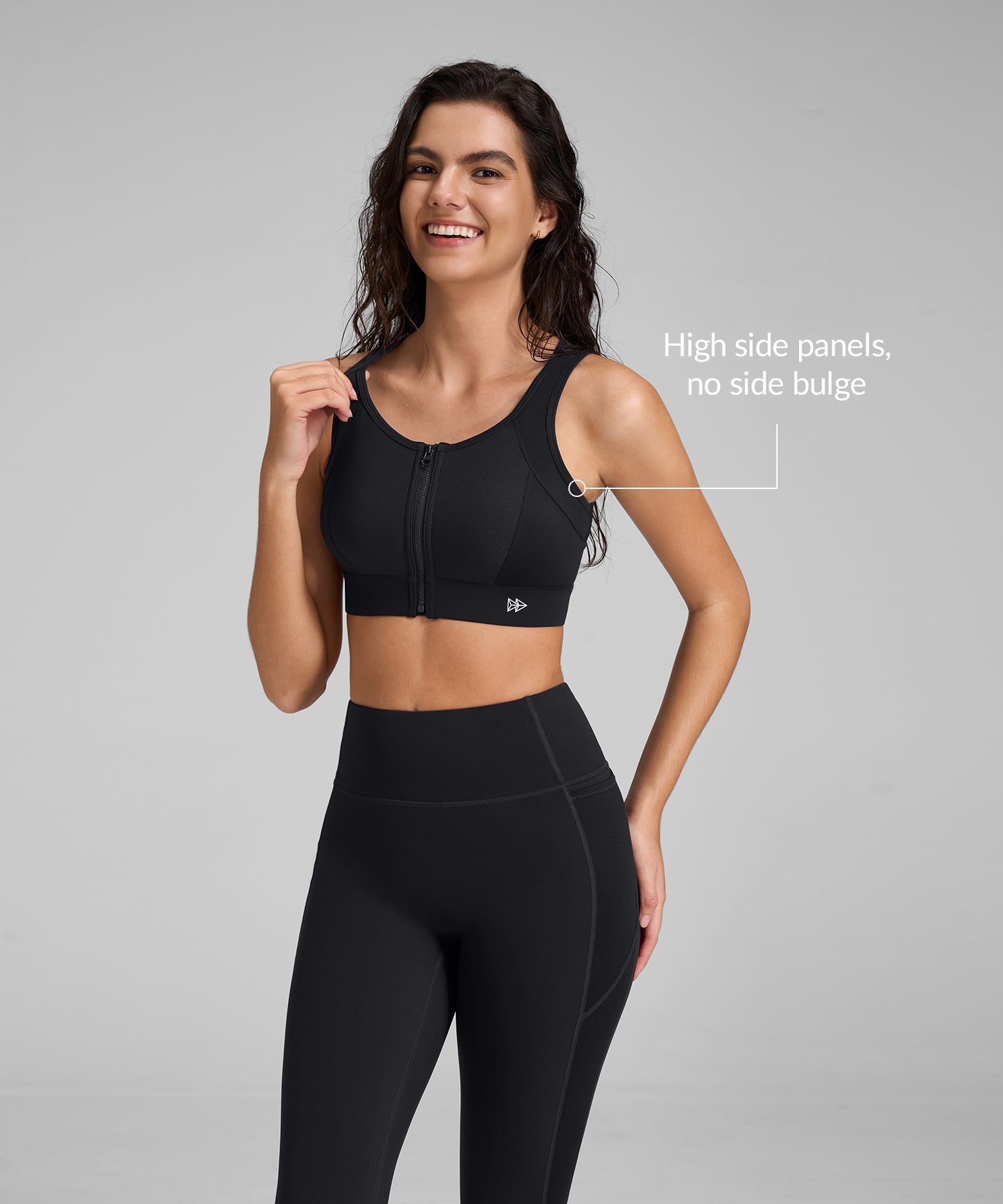 • High-impact sports bra with zip-front design