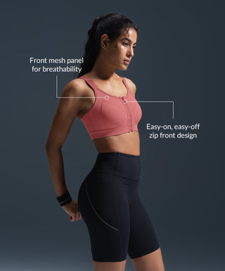 • High-impact sports bra with zip-front design