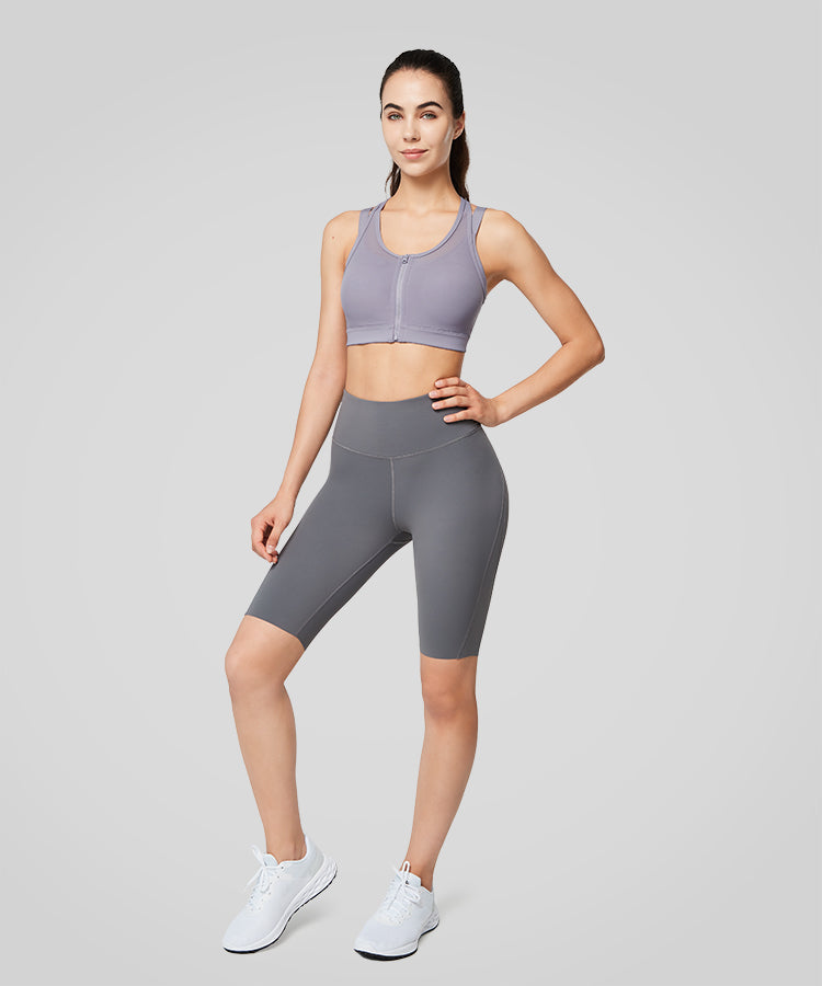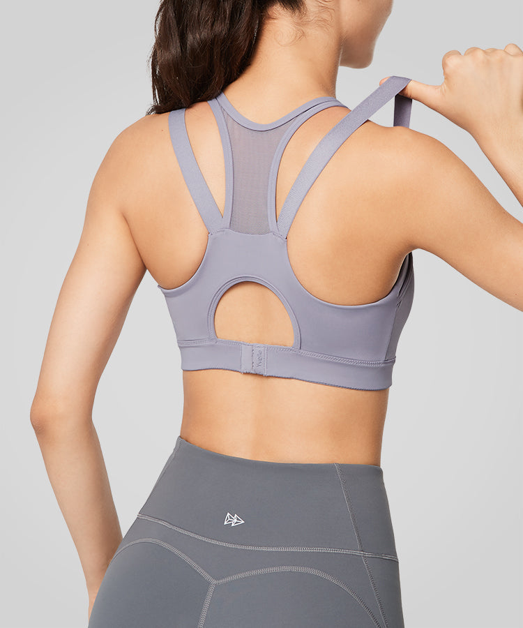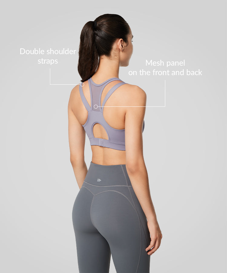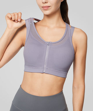 Power Zip Front Mesh Padded Running Bra