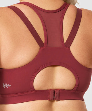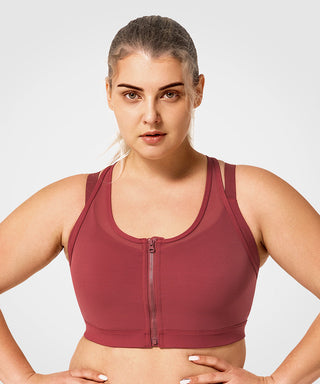 Power Zip Front Mesh Padded Running Bra