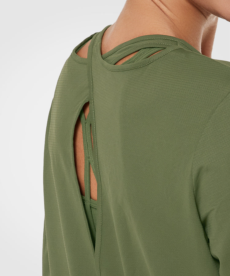 • Back teardrop-shaped cutout for added style and breathability